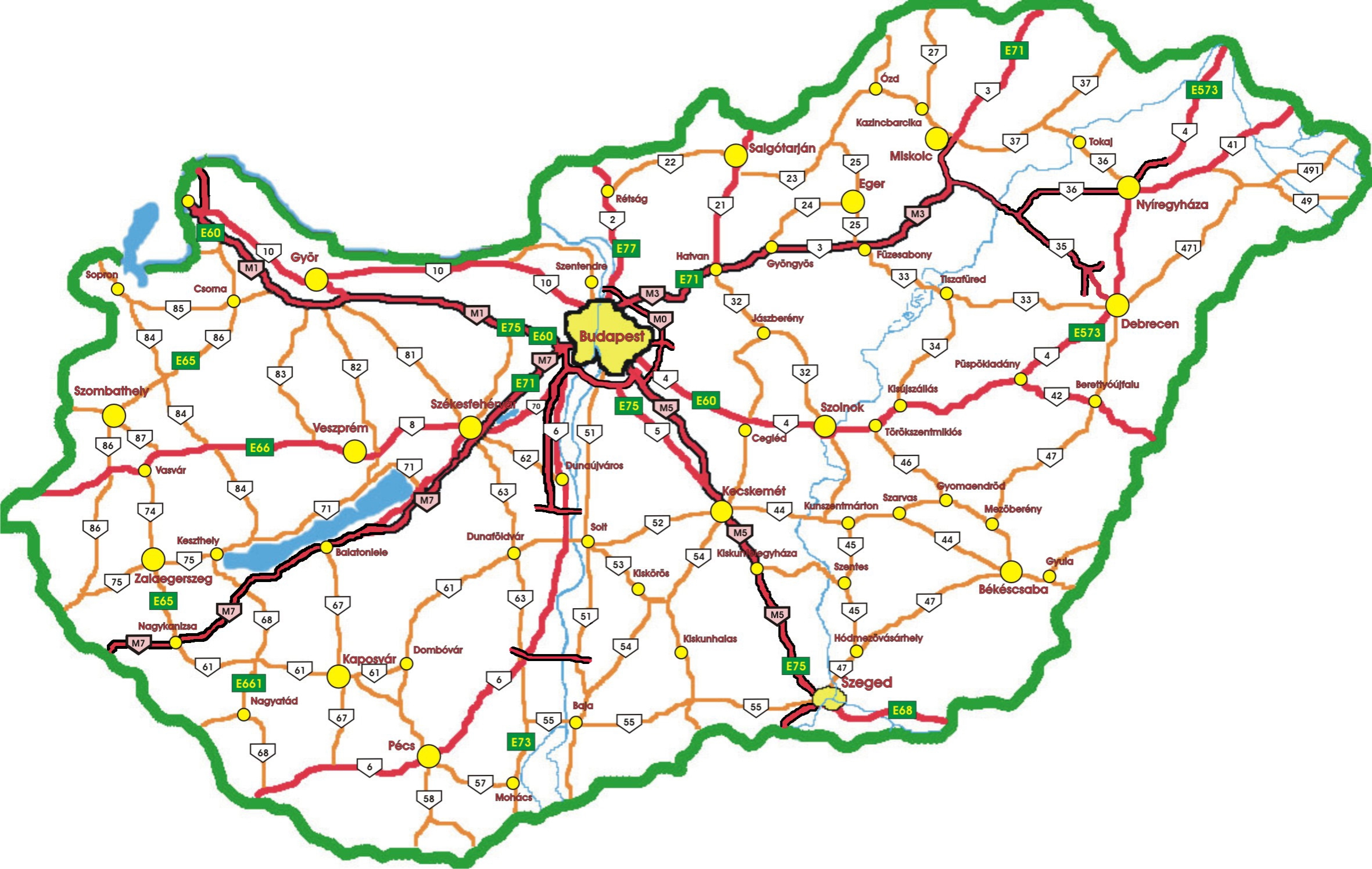 There are more main roads leading to Szeged and also there is a motorway M5. Detailed map of Hungary can be downloaded here.